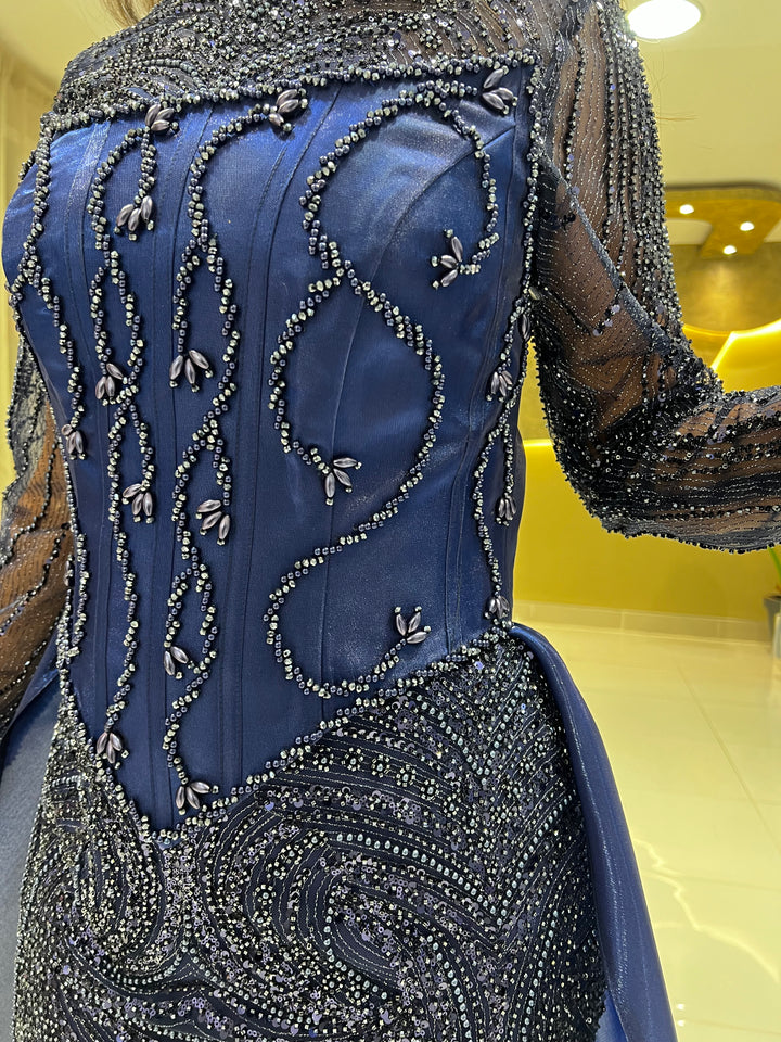 A stunning fitted waist coat that cinches your waist and accentuates your figure. The back corset allows for adjustable sizing, while the heavily beaded dress and waist cape add a touch of glamour to your every step.