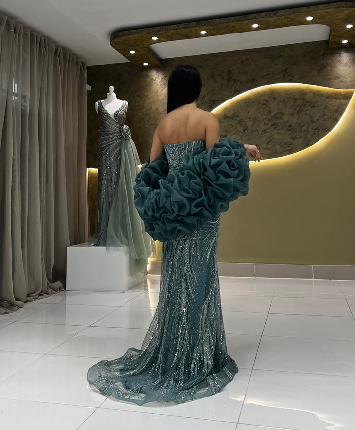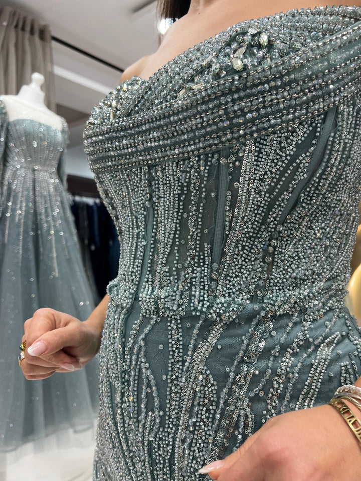 Elevate your style with Eloise - the stunning, handmade dress with intricate bead detailing. The flared arms add a touch of luxury to this must-have piece.