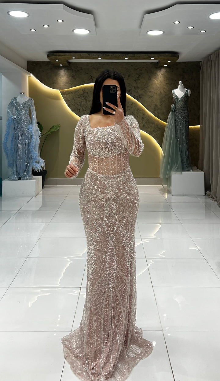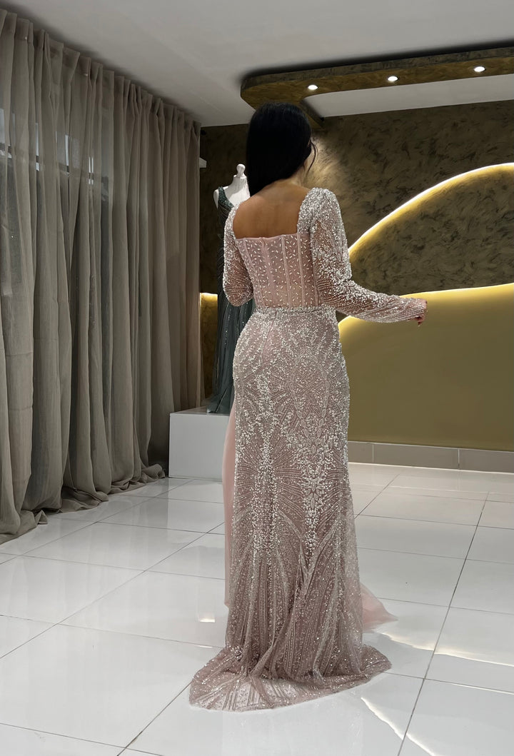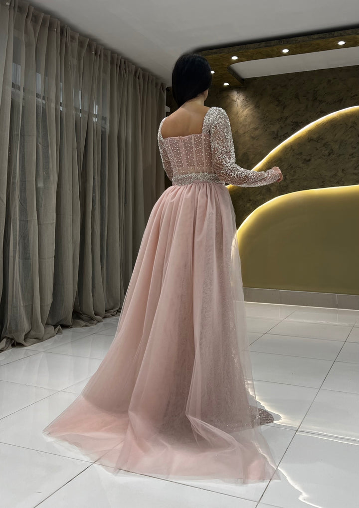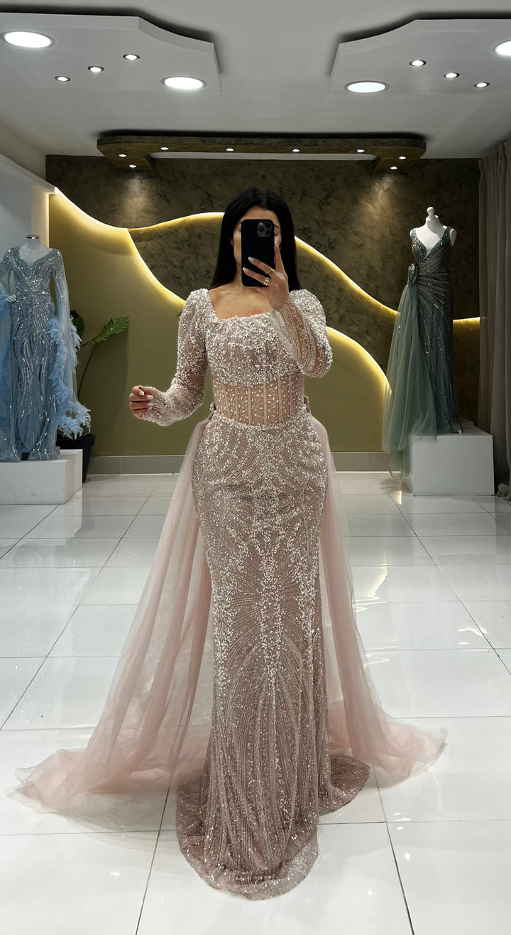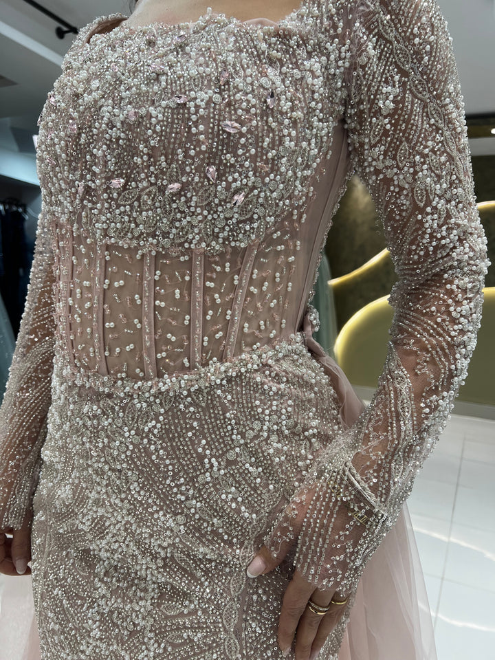 Destined for you, this dress has a fitted waist. The beadwork detailing and luxurious features with the detachable skirt allowing for styling.