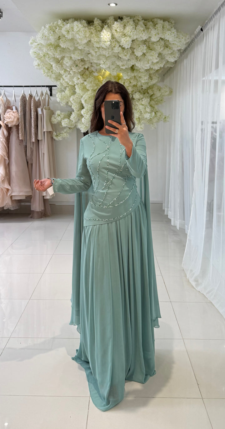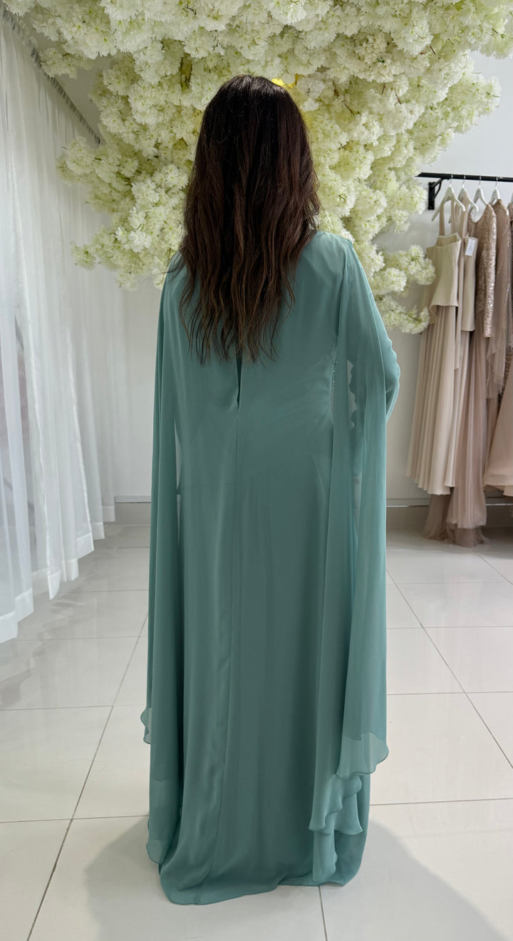 Introducing HANNAH: the perfect dress for the elegant and understated. Adorned with delicate sequins and featuring a beautiful back cape, this dress is perfect for any occasion.