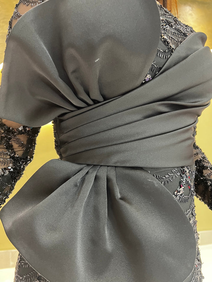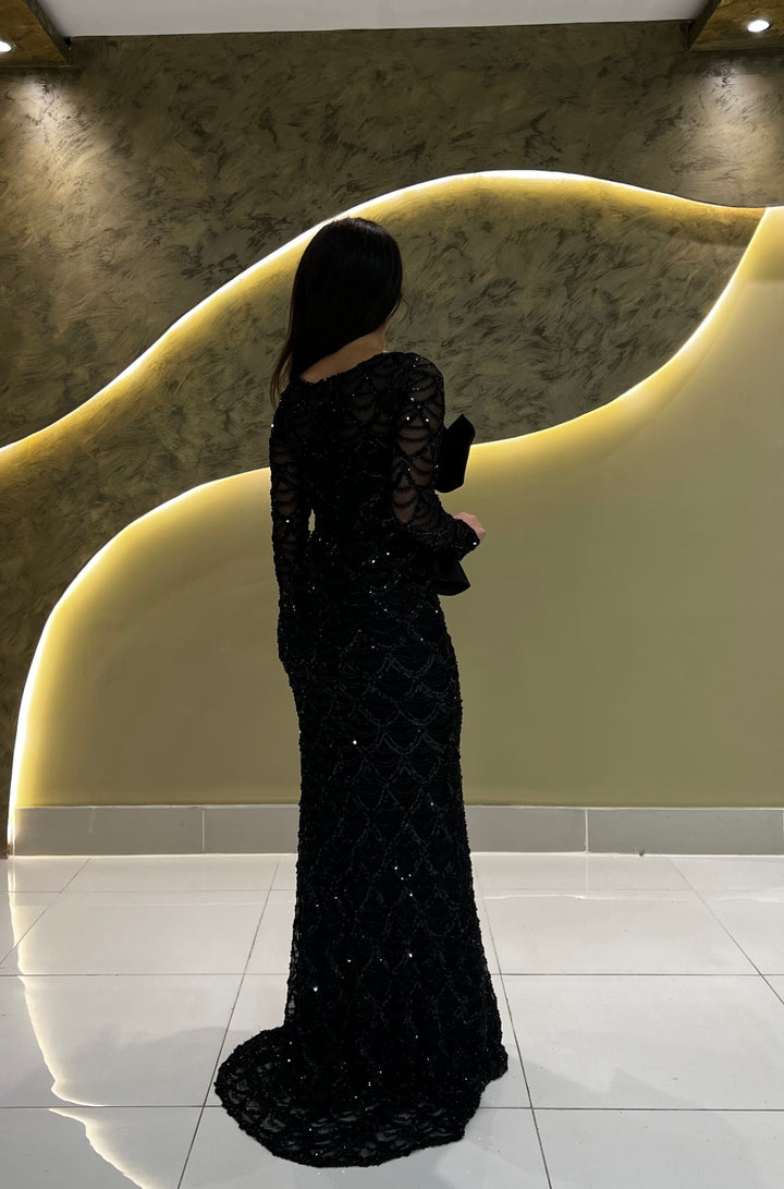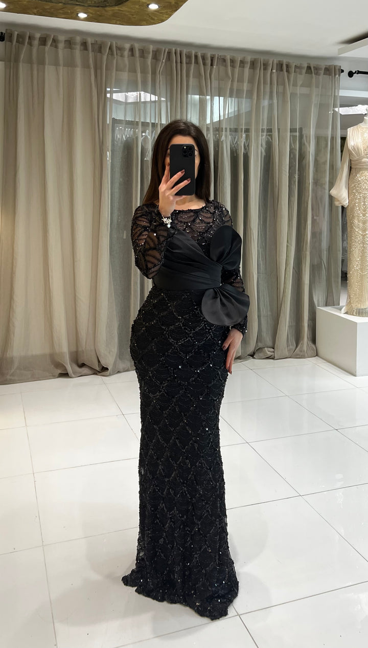 Featuring a bow at the waist and a flattering mermaid fit, this fully beaded dress will make you shine. Perfect for any special occasion, it's sure to turn heads and make you feel confident and glamorous.