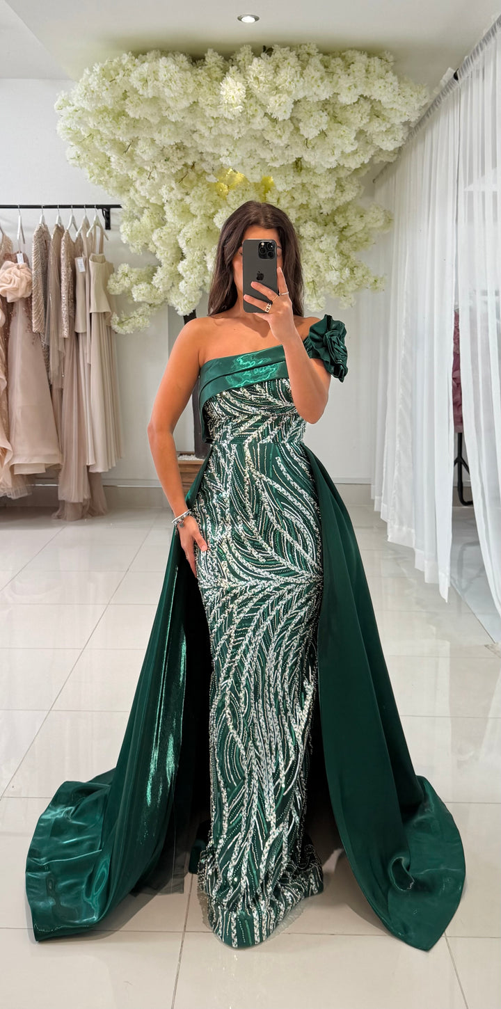 The silver beadwork details provide a hint of sparkle, while the bow on the shoulder and waist cape add a unique flair.