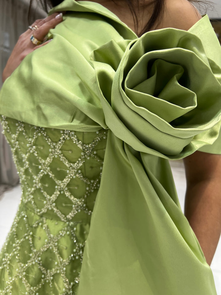 A cape that delicately drapes over the shoulders, exuding elegant style and endless versatility. Adorned with intricate beadwork, this a-line heavy gown boasts a stunning silhouette and sweeping trail. Impress in multiple styles with this must-have piece.