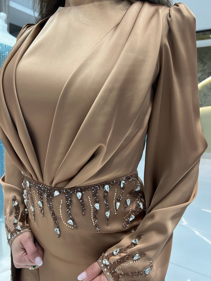 The perfect modest dress for any occasion! With a unique bead detail that accentuates the waist and baggy sleeves, it's both stylish and comfortable.
