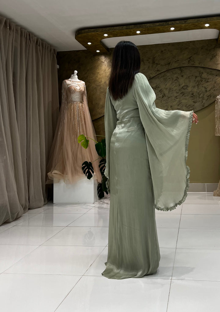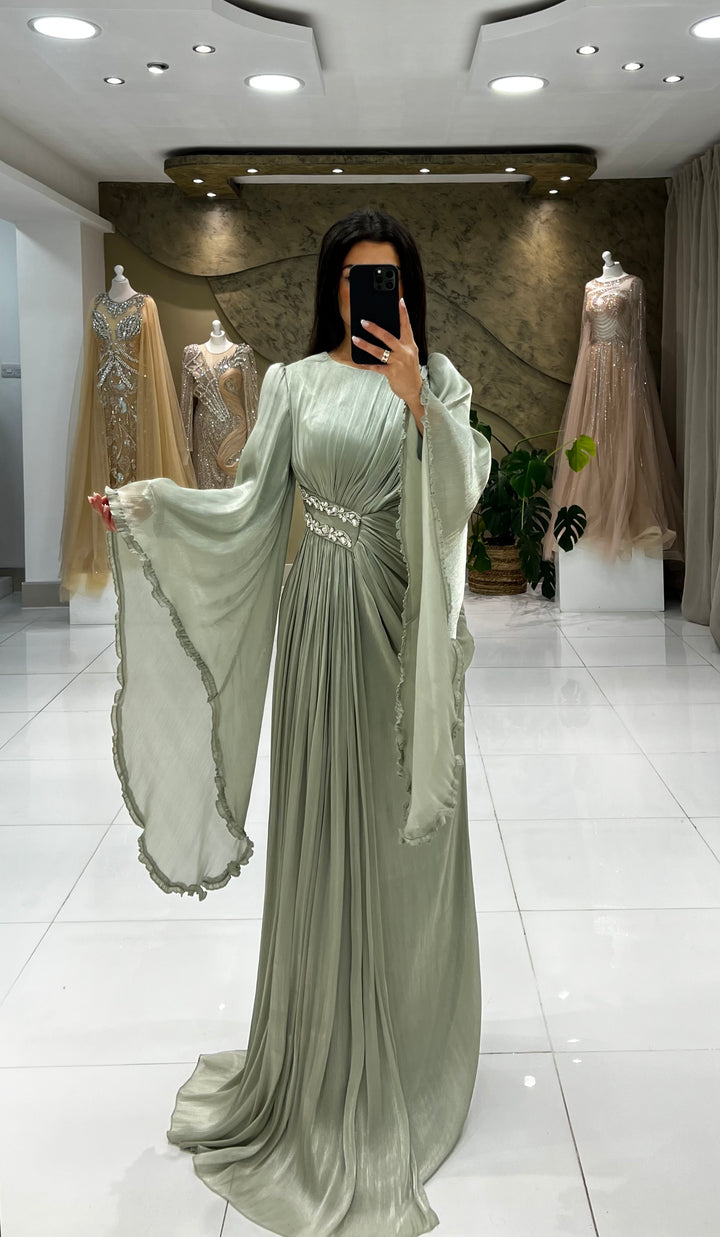 The flair sleeves provide modesty, while the beaded waist adds a touch of elegance. Perfect for any occasion, this piece will make you feel confident and stylish.