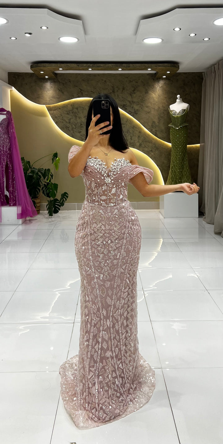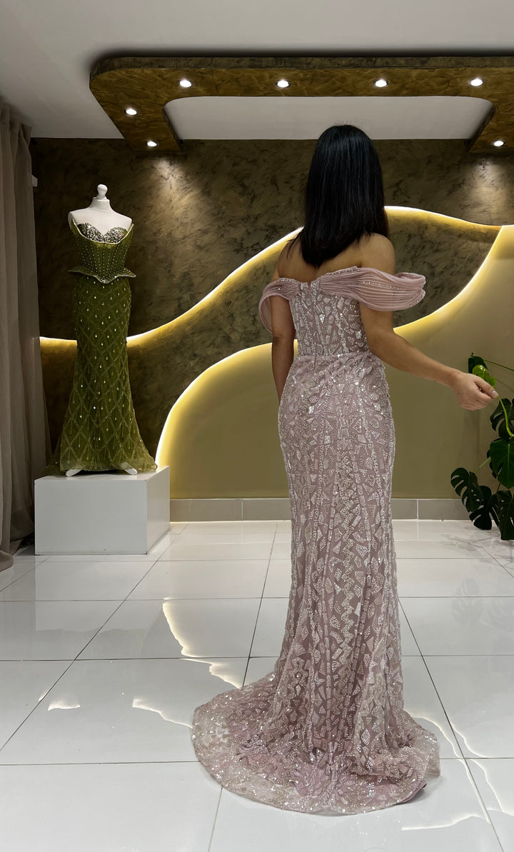 Indulge in luxury and elegance with Soleia. This stunning piece is adorned with intricate bead work and flair detailing, adding a touch of glamour to any outfit. The cascading bead work and subtle trail create a mesmerizing effect, making you stand out from the crowd.