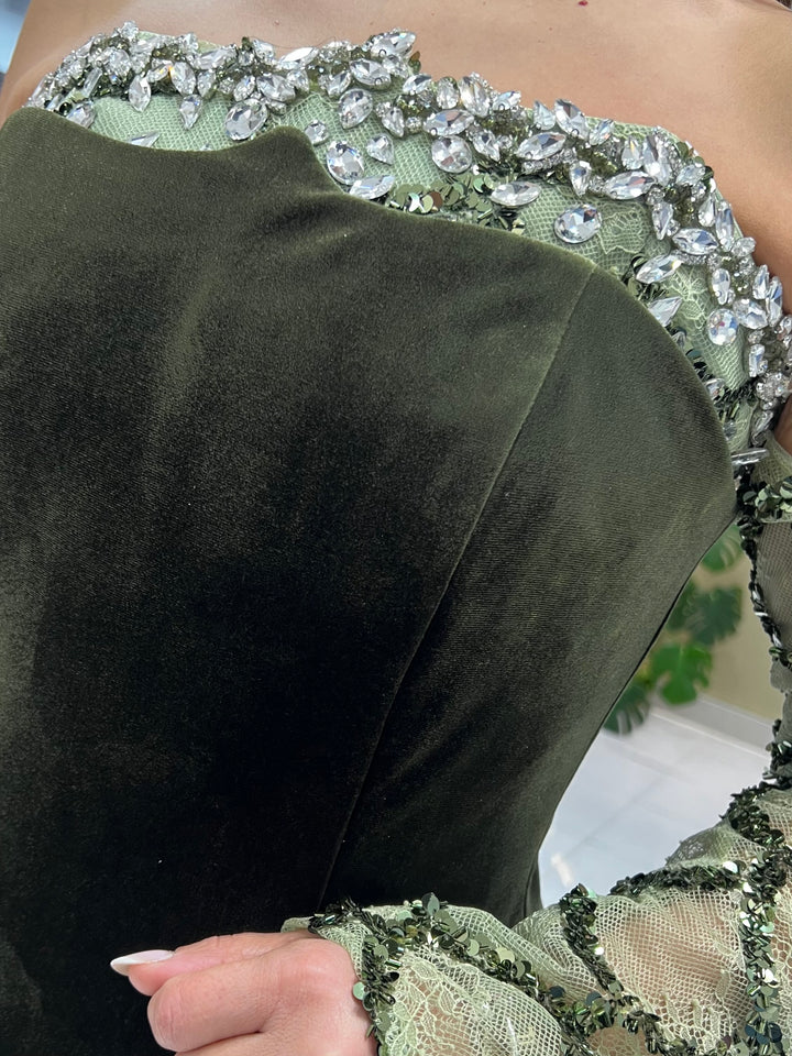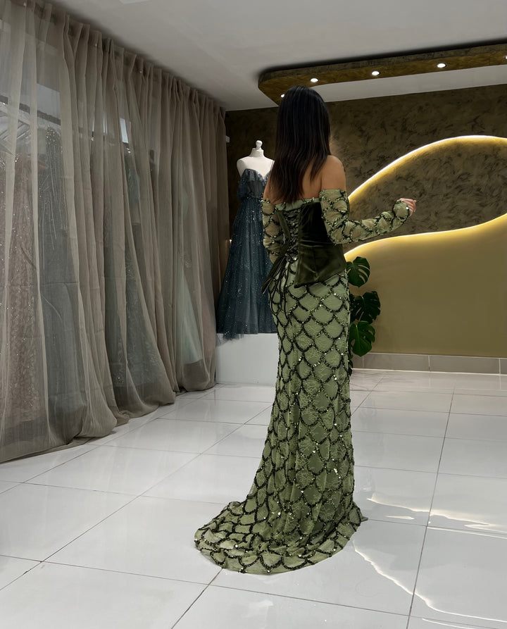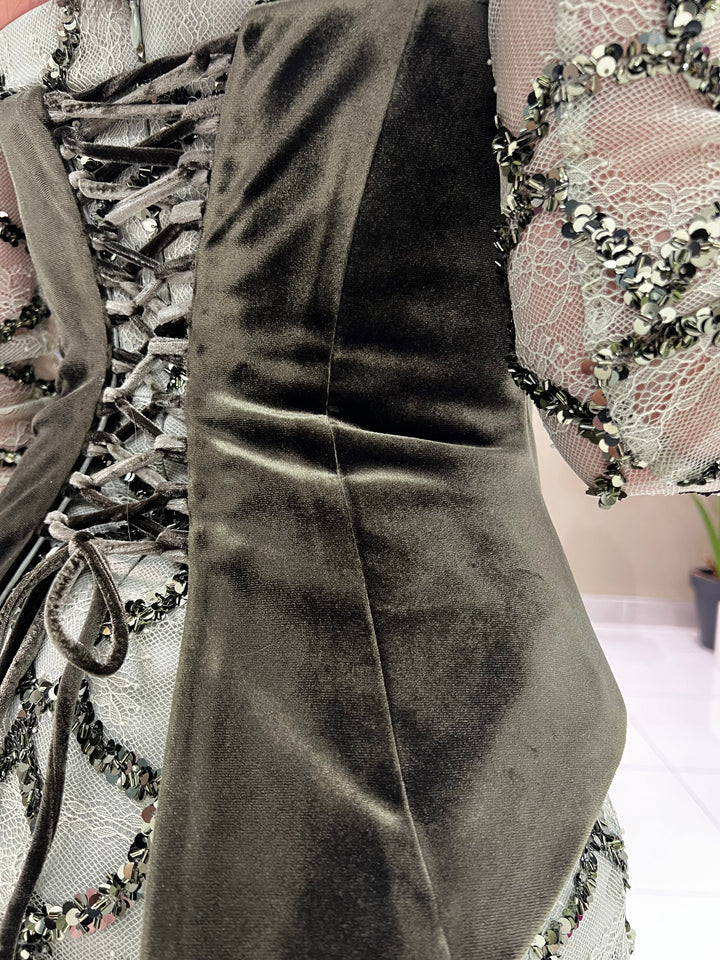 The latest dress that combines intricate pattern work with a sleek waist coat. The delicate bead detailing adds a touch of elegance, while the back corset provides a perfect fit. And with detachable sleeves, you can create multiple stylish looks.
