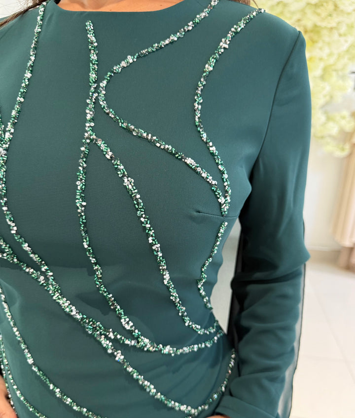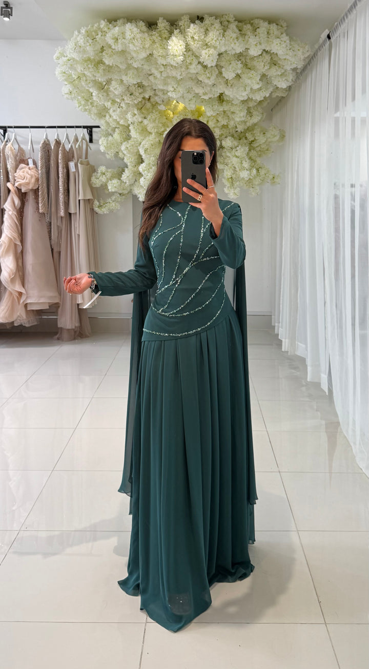 Introducing HANNAH: the perfect dress for the elegant and understated. Adorned with delicate sequins and featuring a beautiful back cape, this dress is perfect for any occasion.